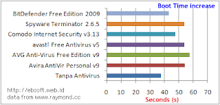 Data dan grafik yang ada di artikel ini diperoleh dari test yang dilakukan Raymond dengan Windows XP SP3. Jika ingin melihat hasil lengkap 106 produk antivirus, silahkan melihat artikel Best Performing (Speed and Memory Usage) Antivirus and Internet Security for 2010.