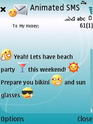 Bagi kalian pengguna HP pasti sering ber sms ria. Nah pasti bosen donk klo sms cm tulisan aja. mau sms anda lebih HIDUP dan FUN??? seperti chating, sms dari HP anda bisa mengirim dan menerima emoticon. penasaran???ANIMATED SMS! adalah aplikasi yg dipasang pada HP SYMBIAN versi S60 3rd .Agar sms menarik dan tidak membosankan, apalagi smsan dengan pacar instal aplikasi ini di HP anda dan HP pacar anda.