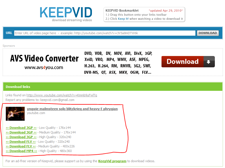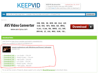 Anda pastinya tau apa itu situs youtube ?? ya... itu adalah situs untuk melihat video secara online. namun, video yang ditonton tidaklah boleh untuk di download. dengan cara apapun youtube memproteksinya, tetaplah masih ada cara untuk mengunduhnya. banyak sekali software yang dipergunakan untuk mengunduh video youtube. namun kali ini saya punya cara mengunduh video youtube tanpa software apapun, dan ga pake ribet!!!http://keepvid.com/ menyediakan layanan unduh video youtube dengan mudah!
