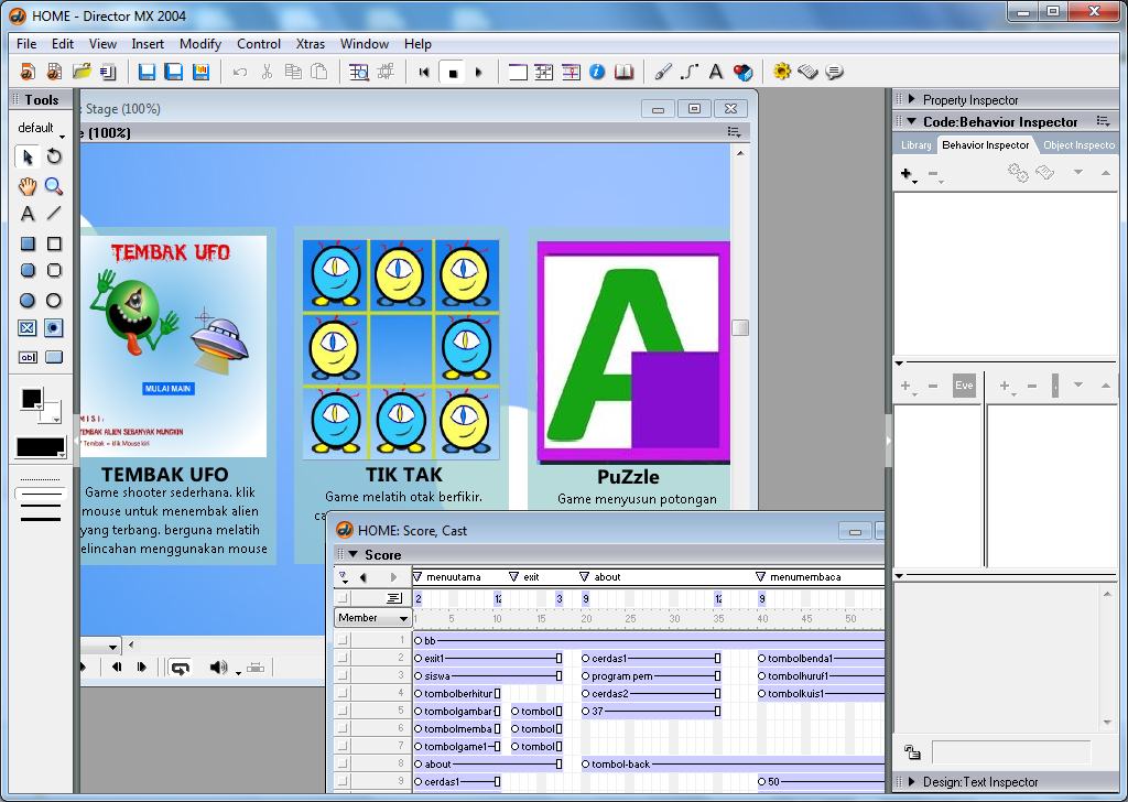 sedang dikerjakan versi selanjutnya. penambahan game yang berguna melatih kecerdasan anak. diantaranya Membedakan gambar, shooter, menebak warna, tik tak, dll pembuatan dikolaborasikan antara macromedia director dan adobe flash! kebetulan tutorial di http://warungflash.com/ sangat bagus sekali. maka saya akan mengambil beberapa source game dari web tersebut.